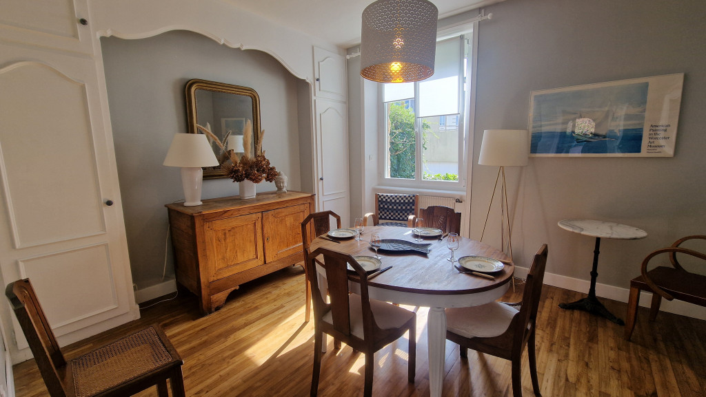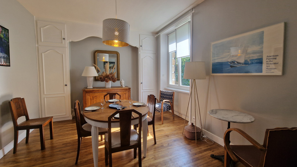 Le coup de ♥ d’Ariane et Valérie : Une jolie maison de bourg avec une ambiance cosy, vous permettant d’accéder à tous les commerces et les animations estivales sans voiture….au calme, et à 5 mns de la première plage; vous apprécierez son espace et sa décoration…