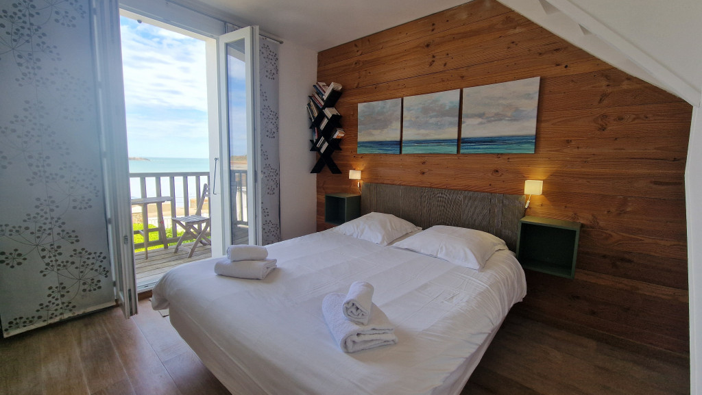 Le coup de ♥ d’Ariane et Valérie : Une jolie maison de vacances avec une ambiance bord de mer, idéalement située, vous permettant de vous baigner tous les jours et d’accéder aux restaurants et animations estivales sans voiture….2 chambres équipées d’un petit balcon pour un café face à la plage; vous apprécierez son espace et sa vue imprenable..