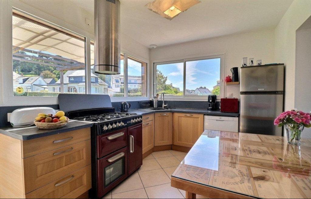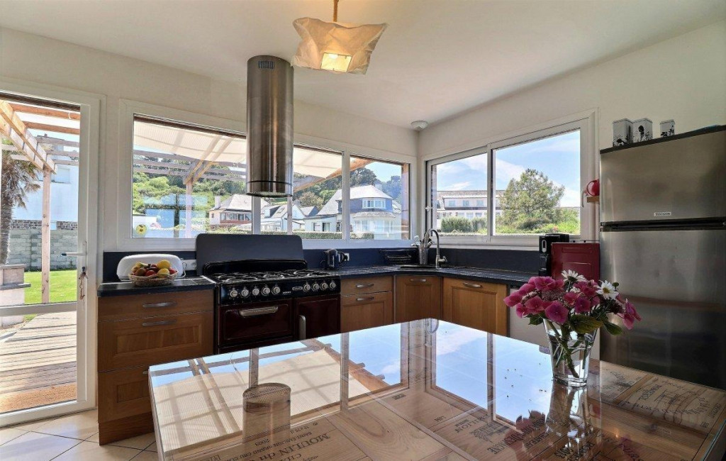 Belle maison de vacances située face à la grande plage surveillée de Primel-Trégastel, à 2 pas des restaurants et des activités nautiques.