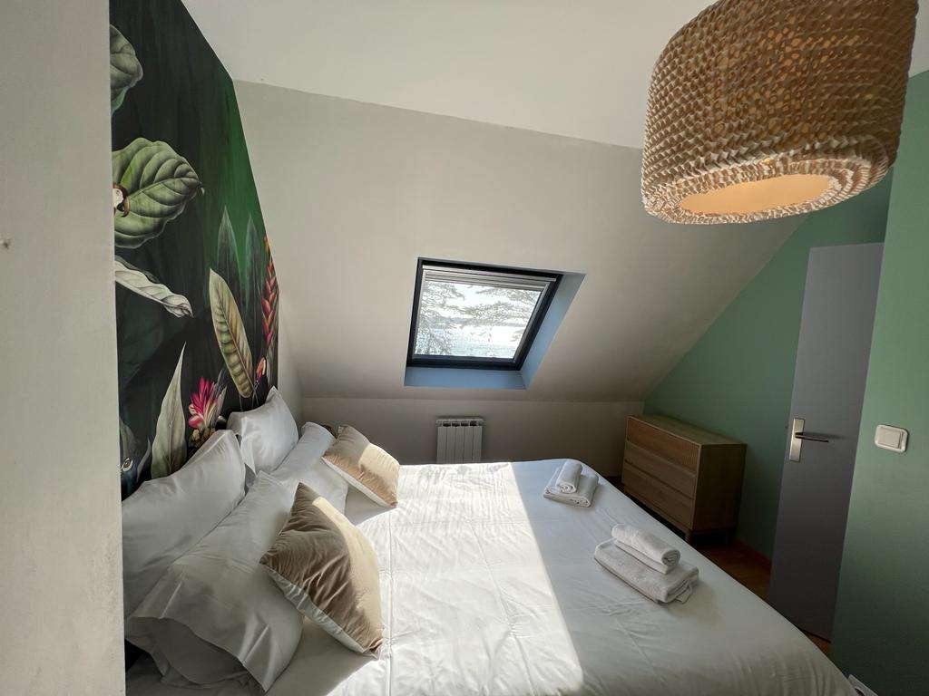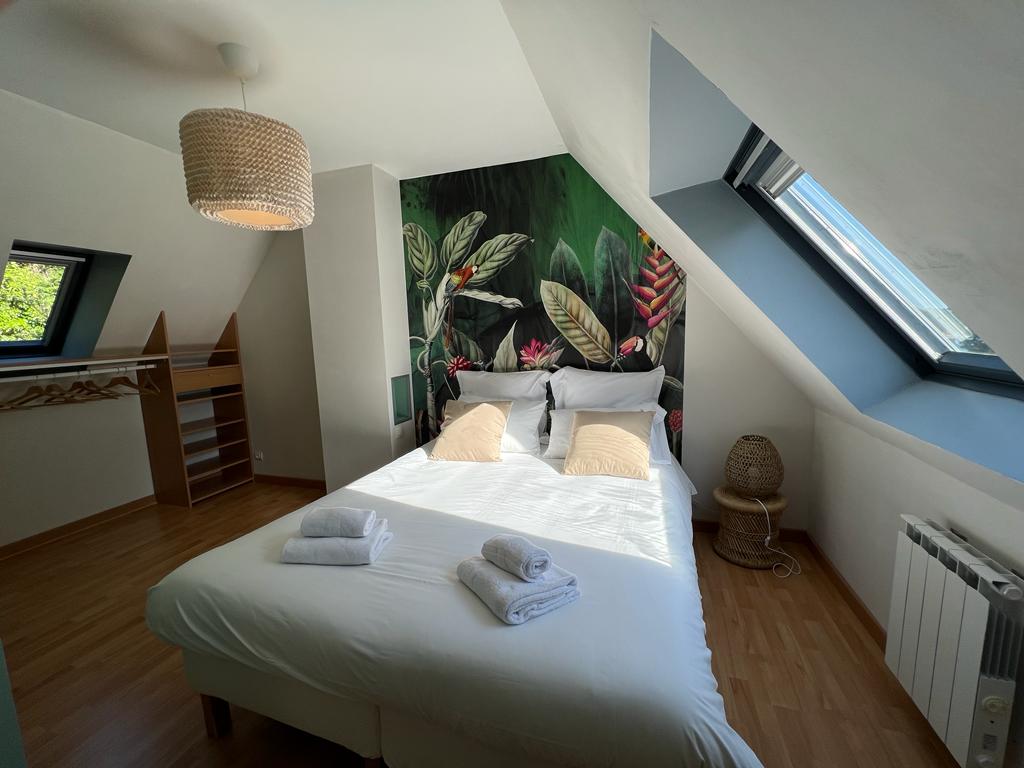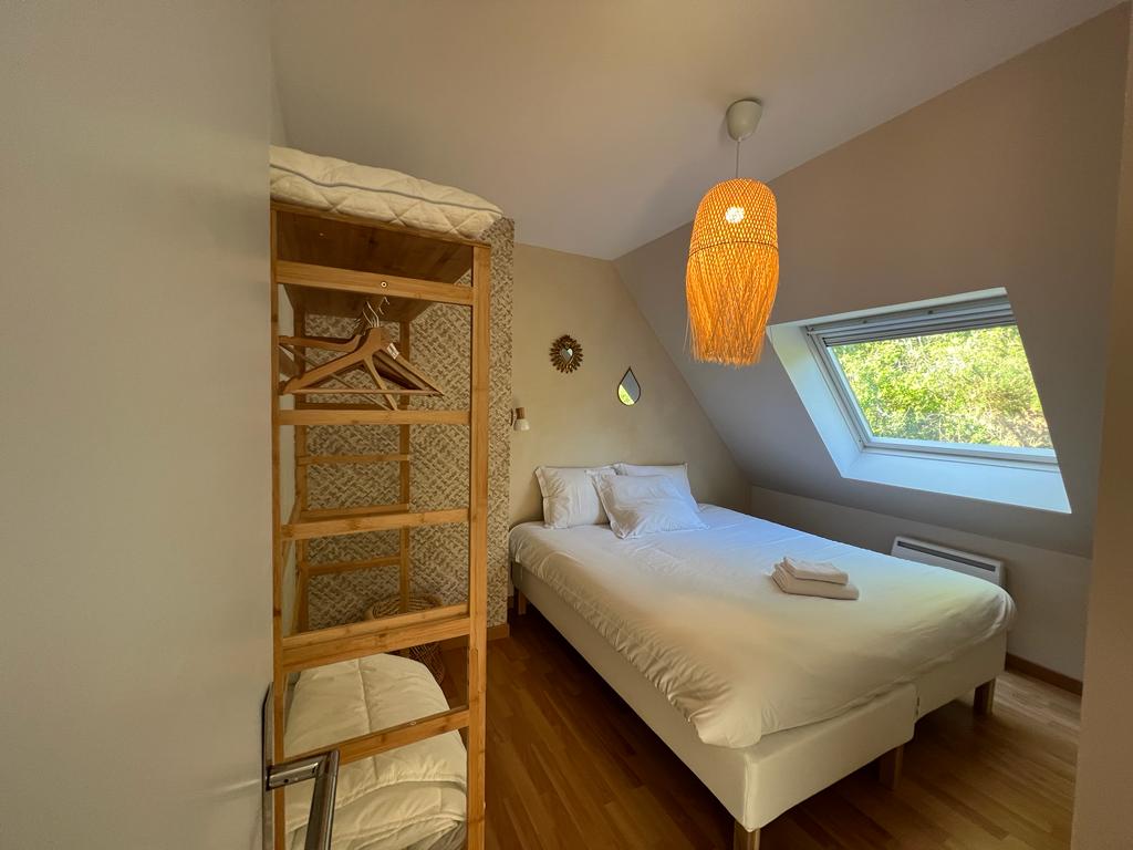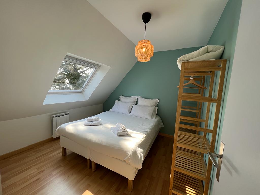 A l’étage, une chambre avec deux lits simples (90 cm) pouvant se rapprocher pour faire un lit double (180 cm), 1 chambre avec un lit double (160 cm), 1 dernière chambre avec 1 lit double (160 cm), une salle d’eau avec douche à l’italienne et WC. Sur le palier de l’étage, vous trouverez une chauffeuse pouvant faire un lit d’appoint confortable.