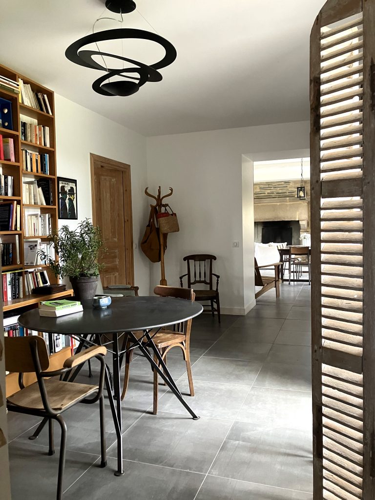 Ce beau corps de ferme lumineux comprend au rez de chaussée : une grande pièce à vivre avec cuisine ouverte tout équipée, une grande table de salle à manger pour des repas conviviaux en famille ou entre amis, un espace salon très confortable, une buanderie à proximité de l’entrée, un bureau si besoin de s’isoler ou de « bouquiner »au calme, un WC séparé. La grande pièce de vie donne sur une belle terrasse où vous prendrez plaisir à déjeuner ou dîner en toute convivialité.