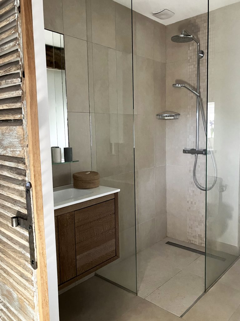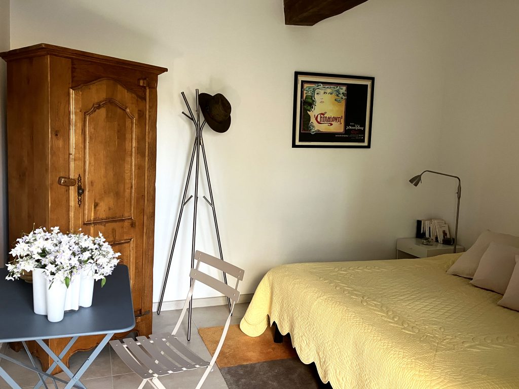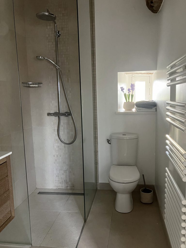 Vous bénéficiez d’un dernier couchage dans une dépendance accessible de la maison principale qui offre un lit double (160 cm) et sa salle de bain avec douche italienne et WC.